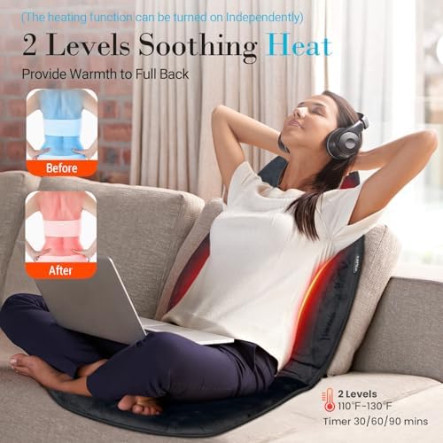 Fast Heating & Safe to Use: CuPiLo heated back massager features a fast heating function with 2 heat levels that soothe the back and seat area, making this massage chair pad a nice seat warmer in winter! It also comes with an auto shut-off timer and overheating protection system, ensuring user safety (The heating function can be turned on independently).