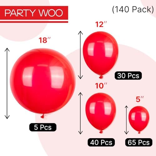 <br>Thick Durable Latex: These red balloons are made with high quality thick material, each balloon stays full longer perfect for arches garlands centerpieces. Ensuring your graduation, birthday decorations stays perfect from setup to celebration end.<br>What To Fill With: Red latex balloons filled with AIR will stay full for up to 72 hours, and have standard balloon necks, allowing quick inflation. These red balloons can bringing joy to your birthday party, wedding, baby shower decorations.<br>Attention & Warning: Please DO NOT overfill the red balloons and also avoid sunburn, overheat, pointed object and excessive friction. Control the amount of air inflated into each balloon to achieve your ideal balloon size, and enjoy your birthday party.<br>Perfect for Multiple Occasions: Whether it's a graduation, bachelorette party, wedding party, red carpet party, birthday party, casino party, citizenship party, cherry themed party, these red balloons are ideal and making your event more memorable.