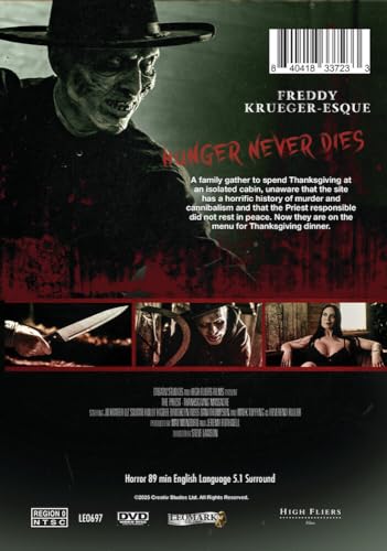 An estranged family reunites for Thanksgiving at a remote cabin, unaware of its gruesome past. As night falls, the undead priest behind a legacy of murder and cannibalism rises again. Trapped and hunted, the family must face the horrifying truth – they’re the main course for a twisted Thanksgiving feast.